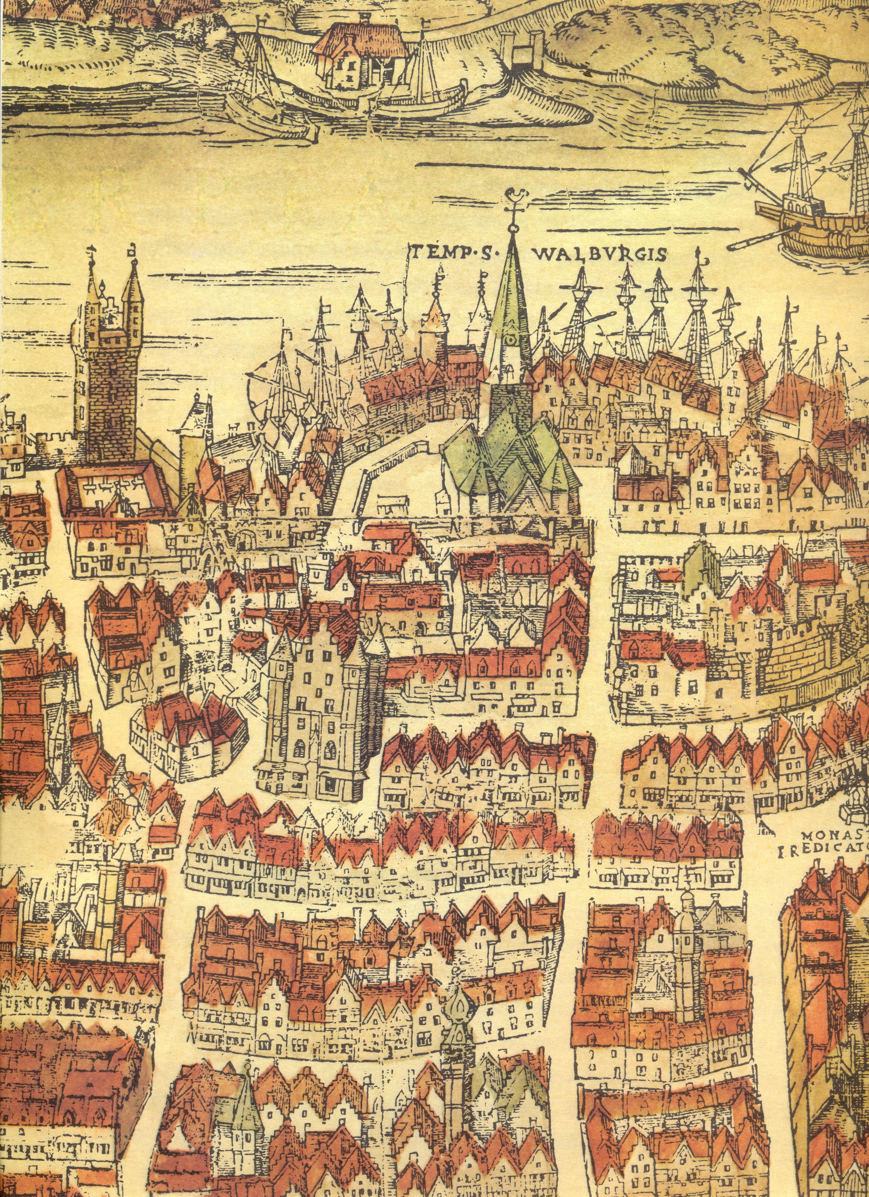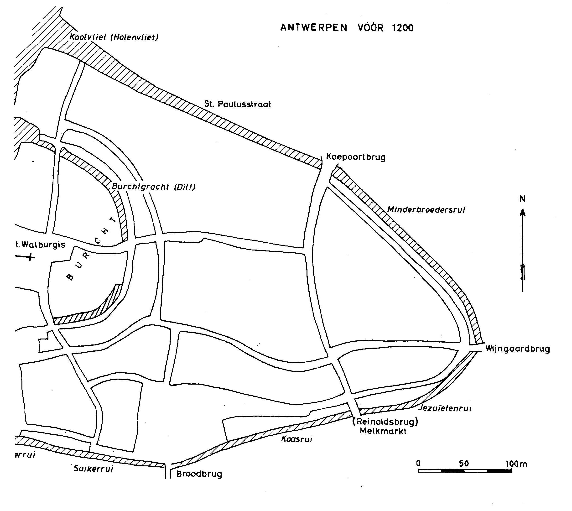 De Antwerpenaars bouwen dijken om de drassige gronden ten noorden van hun woonplaats droog te leggen, zodat er vee kan grazen. Ten zuiden van de Burcht ontstaat een vismarkt. Vlakbij komen zich nieuwe bewoners vestigen.