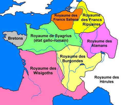Naar Germaans gebruik verdelen zijn kinderen zijn enorme rijk. Zo ontstaan diverse, elkaar beoorlogende Frankische rijken. Clovis’ nazaten geven weinig blijk van gezag of staatsmanschap. Zo komt het dat ze steeds meer aan macht inboeten ten gunste van hun hofmeier – hun eerste minister, zeg maar.