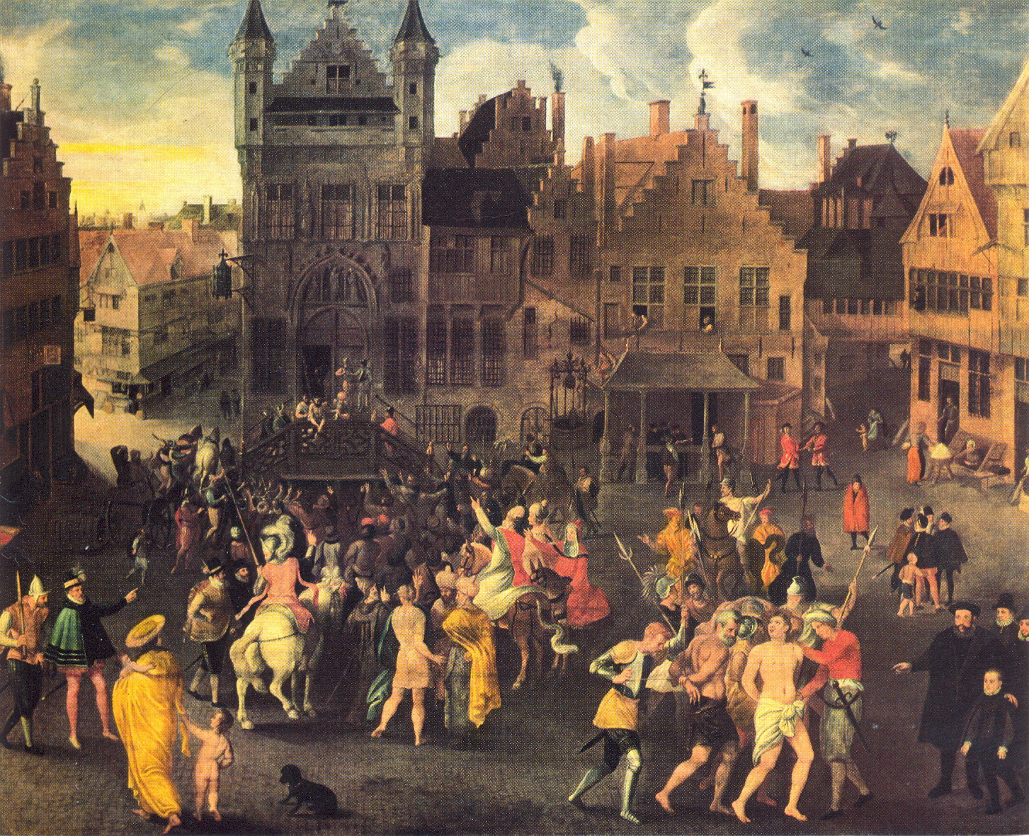 De Antwerpse rederijkers organiseren een toneelwedstrijd. 28 kamers uit Brabant, Vlaanderen, Henegouwen, Zeeland en Holland nemen deel.