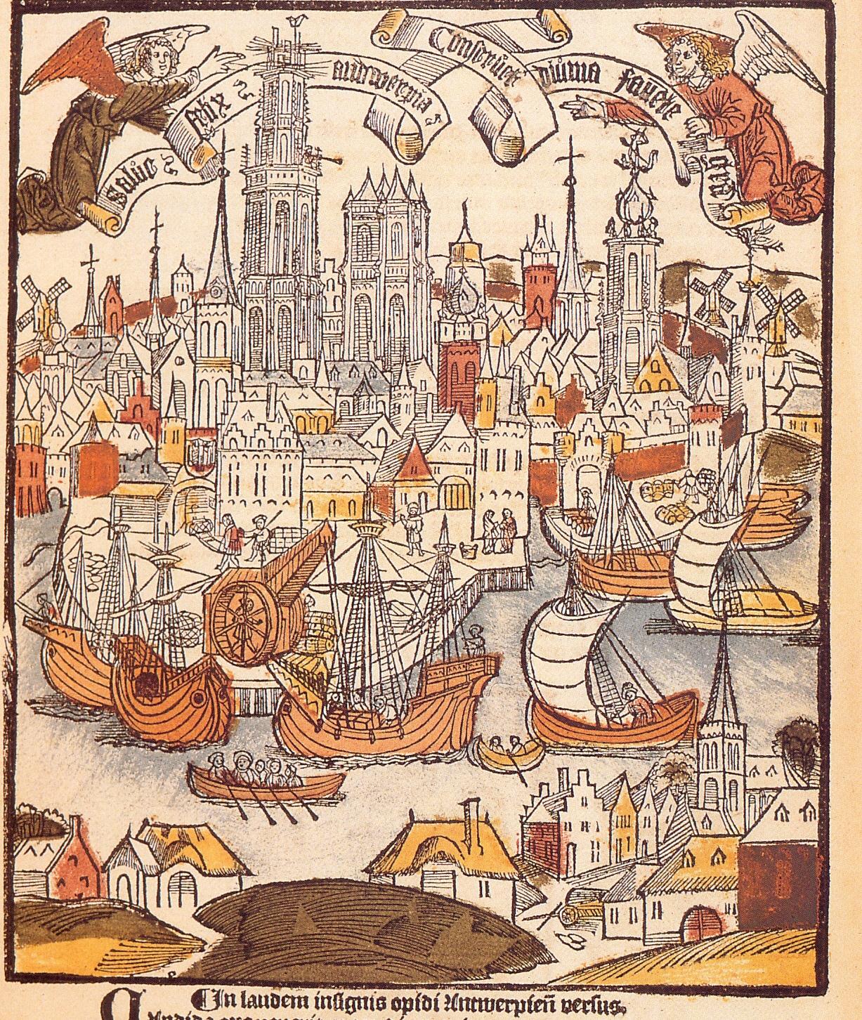 Antwerpen krijgt van Maximiliaan de aluinstapel. Aluin is van groot belang voor de lakennijverheid.