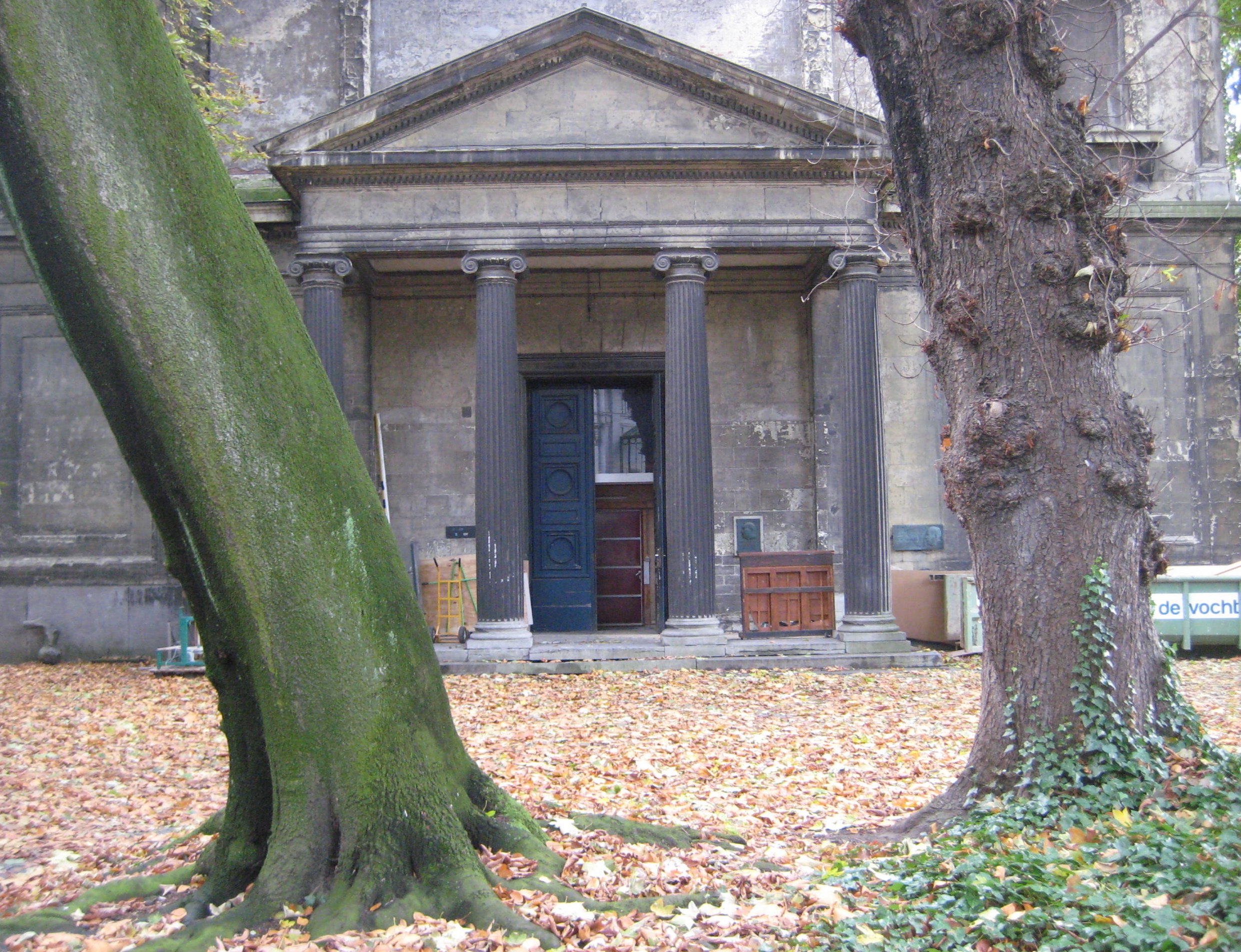 Refter in de Mark Mackenzaal, achter het trappenhuis van Bourla’s Museum. Let op de fraaie arduinen zuilen (foto Jan Lampo).
