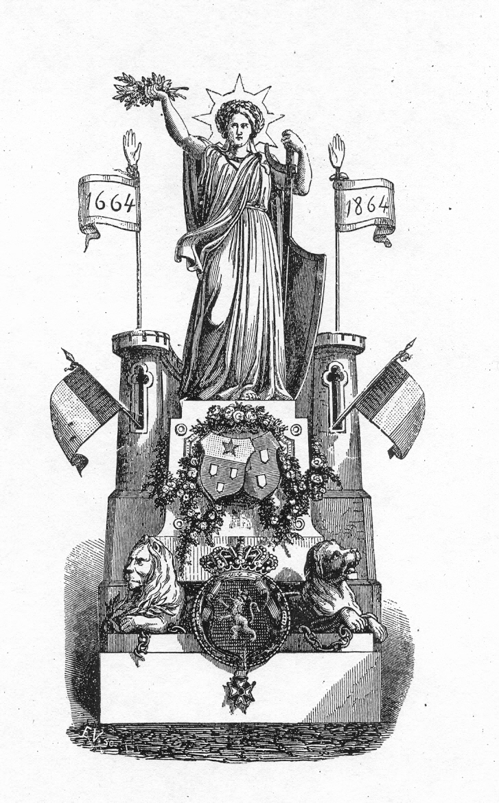Bij “Kermisfeesten” van 1864 is de Maagd van Antwerpen alomtegenwoordig. De feestelijkheden staan dat jaar in het teken van de 200ste verjaardag van de Koninklijke Academie voor Schone Kunsten.
