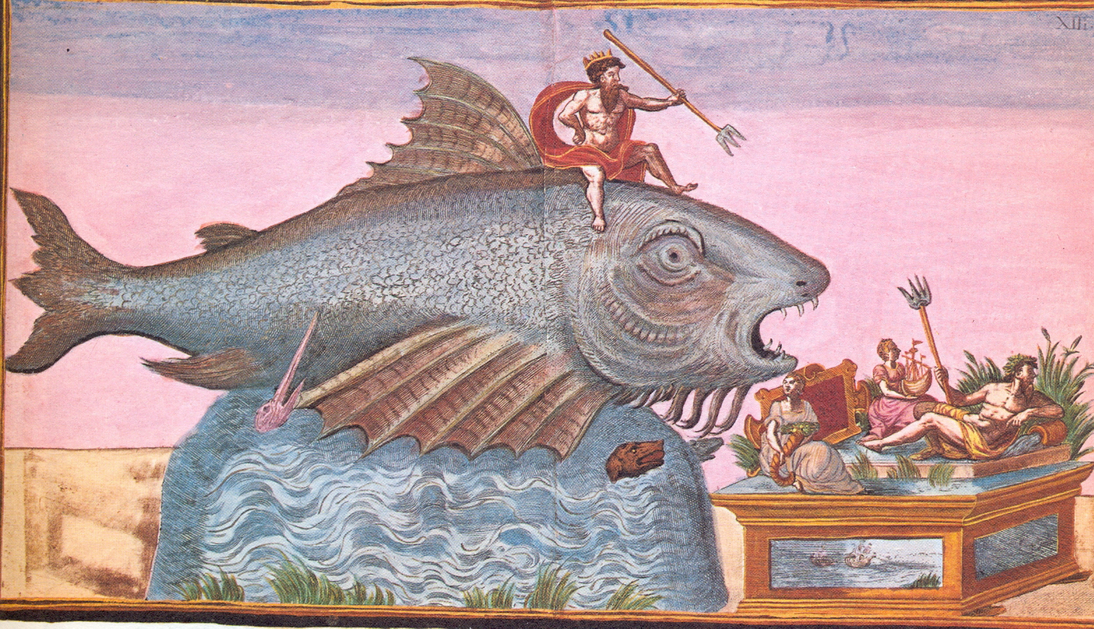 Er komt ook een walvis met op zijn rug Neptunus, de god van de zee. Een schip verbeeldt de commerciële voorspoed van de stad. En de Maagd van Antwerpen, alias Antverpia doet haar intrede.